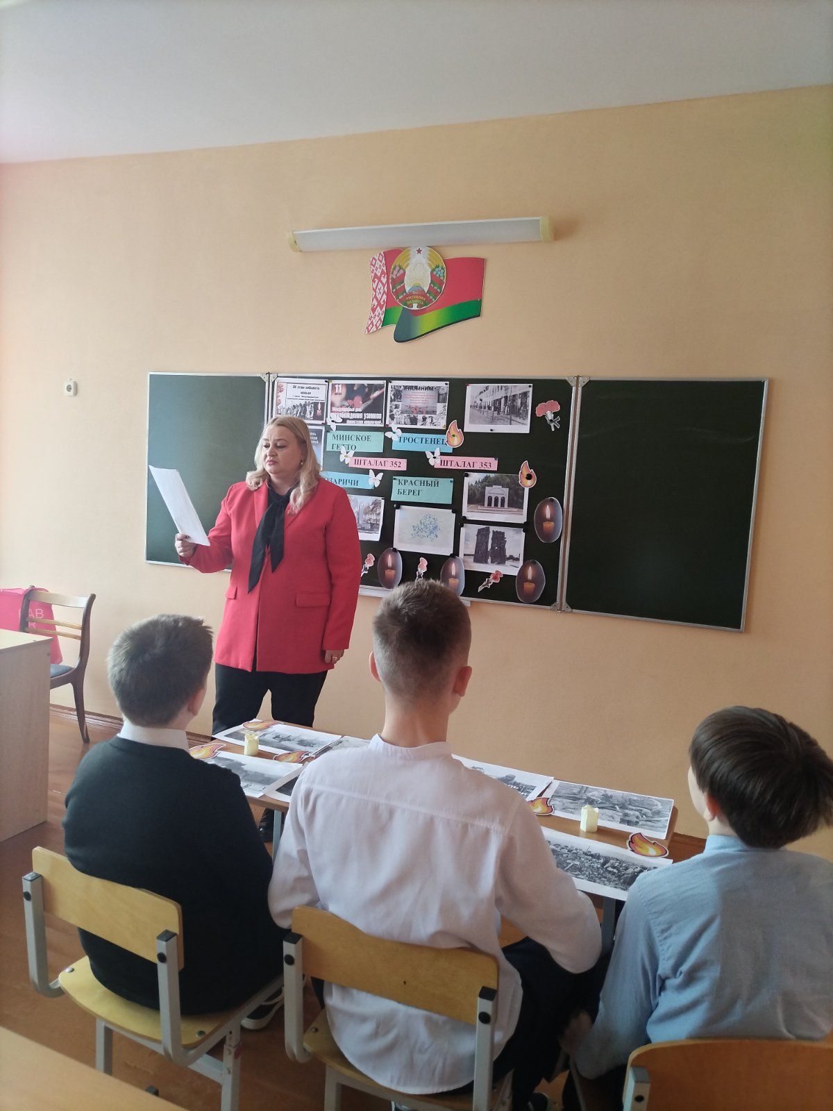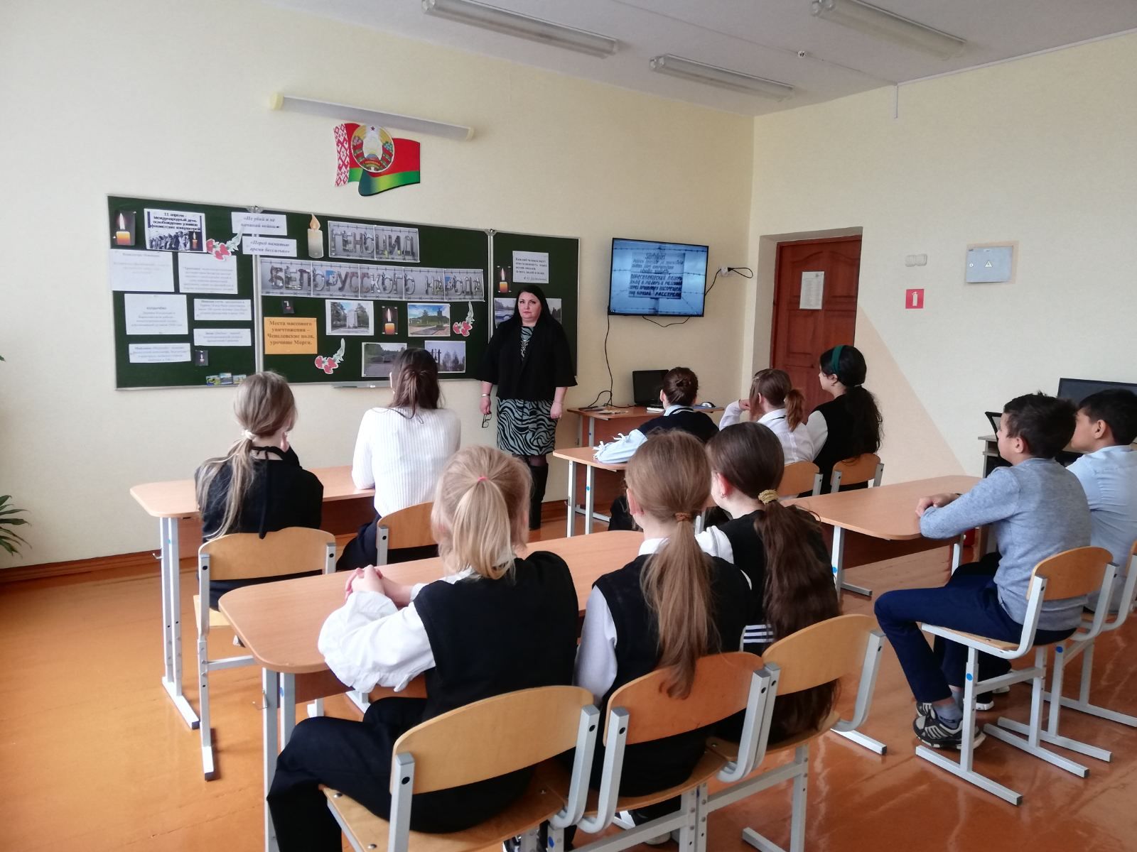 11 апреля - Международный день освобождения узников фашистских концлагерей - стал темой занятия "Геноцид белорусского народа" для учащихся 5-6 классов. 9 апреля во время информационного часа школьники узнали о концентрационных лагерях на территории Беларуси, о трагедии сожжённых деревень, о жертвах немецко-фашистских захватчиков. Учащиеся почтили память погибших минутой молчания. Пока мы помним о жертвах войны, мы живы, мы за мир!