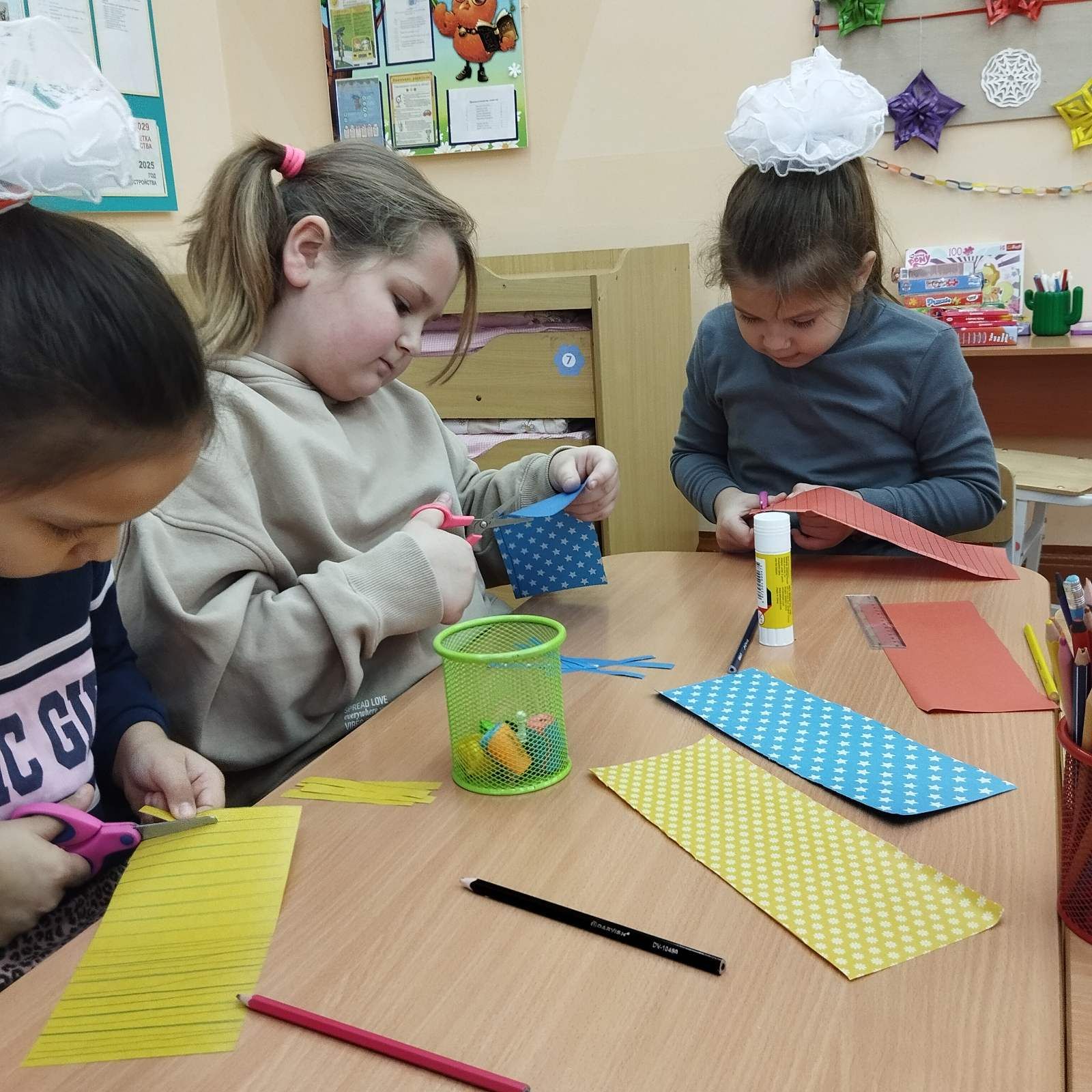 В преддверии волшебного праздника, 30 декабря учащиеся начальных классов побывали в творческой мастерской Деда Мороза по изготовлению снежинок и новогодних игрушек.