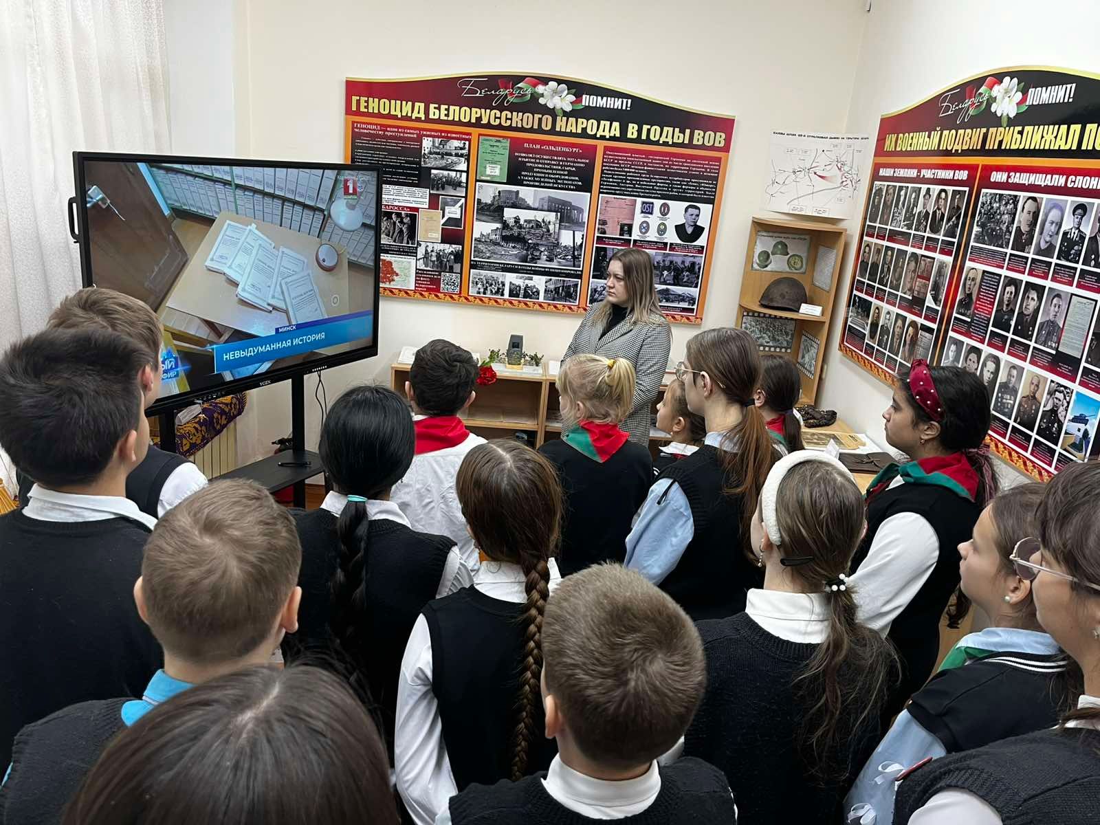 11 декабря 2025 года для учащихся 1 и 4 класса прошел информационный час "Память и боль белорусского народа". Цель мероприятия — формирование у учащихся исторической памяти, уважения к подвигу и трагедии белорусского народа. В ходе мероприятия учащиеся познакомились с ходом расследования фактов геноцида, узнали о проводимых карательных операциях на территории Беларуси и их последствиях для мирного населения.