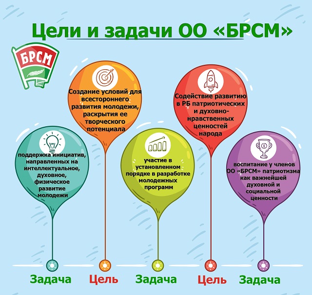 Целью организации является создание условий для всестороннего развития молодёжи, раскрытие её творческого потенциала на основе патриотических и духовно-нравственных ценностей белорусского народа.