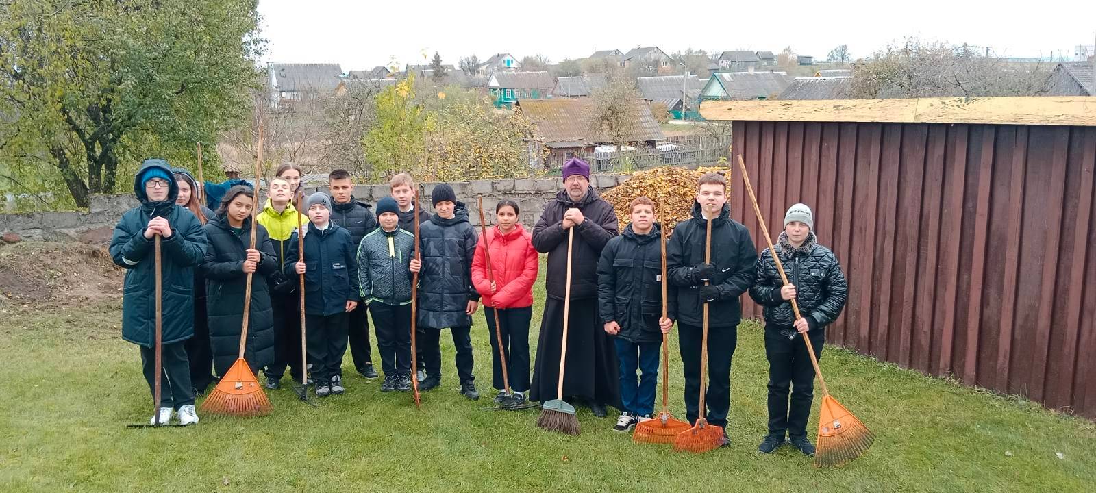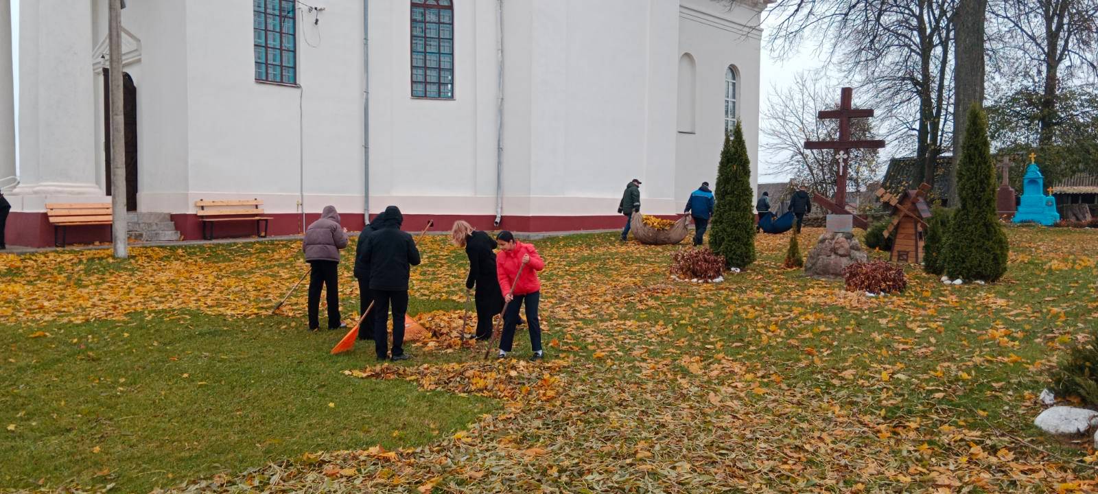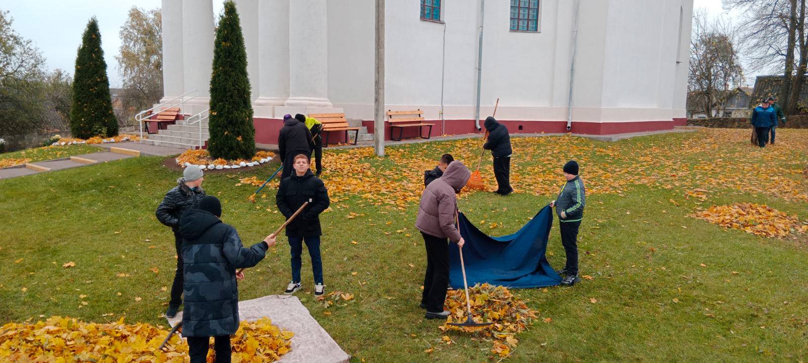 Школьники убрали территорию храма. Ученики сгребали осеннюю листву и подметали дорожки. После хорошо выполненной работы всегда возникает чувство радости, ведь чистота вокруг нас рождает чистоту в душе.