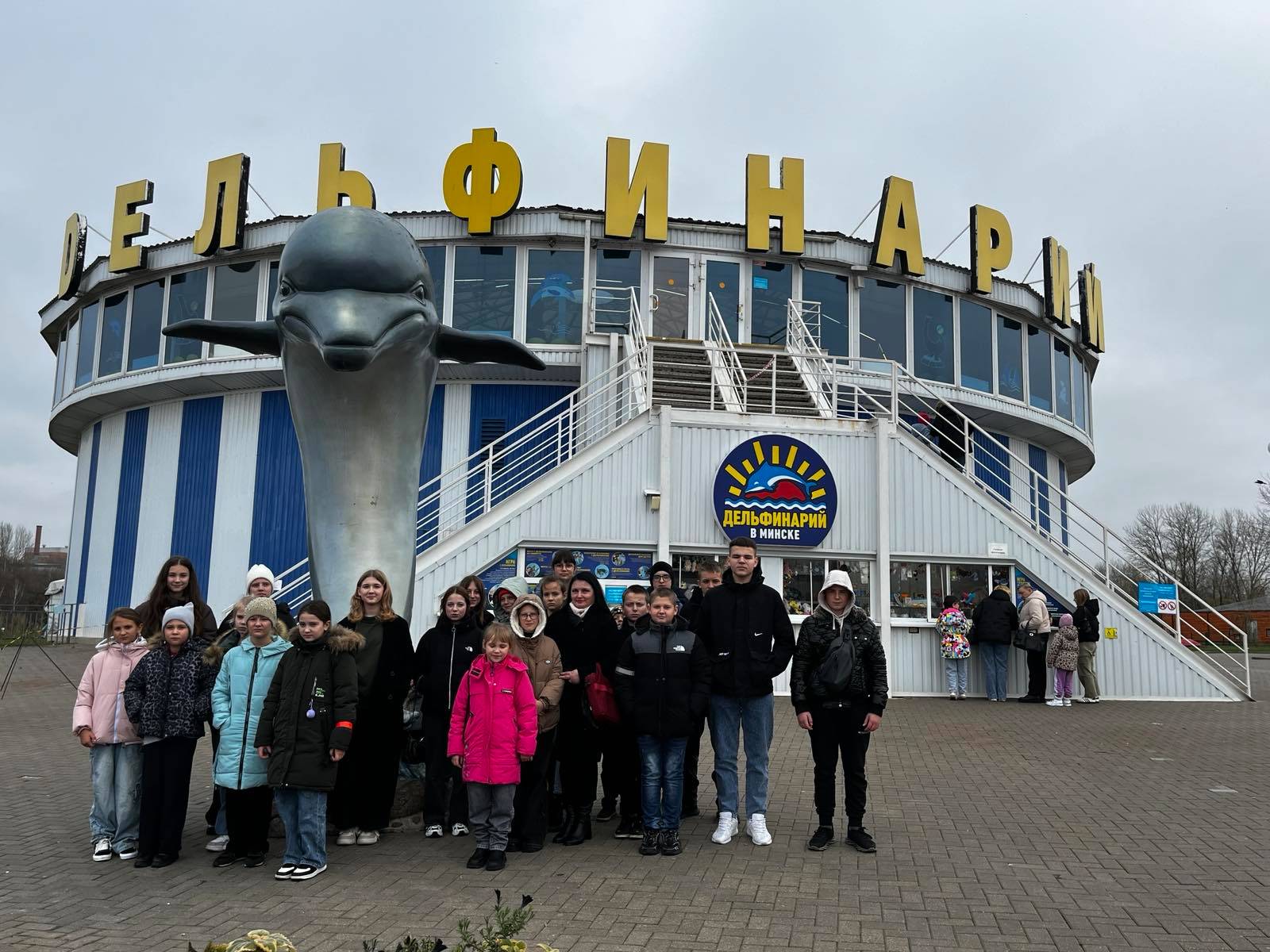 Самым захватывающим событием осенних каникул 2025 года стала для наших школьников поездка в дельфинарий г. Минска, организованная благочинным Вадимом Сергеевичем Петлицким. Ранним утром 5 ноября ребята отправились на экскурсию. Выступление морских обитателей было захватывающим и интересным. Дельфины, морской лев и морской котик показывали трюки, танцевали под музыку и даже пели. Бурю восторга у школьников вызвала игра в мяч с дельфинами! Затем ребята посетили Музей авиации, узнали, как происходит полет в космос, смогли посидеть за штурвалом самолетов. Можно сказать, что поездка удалась!