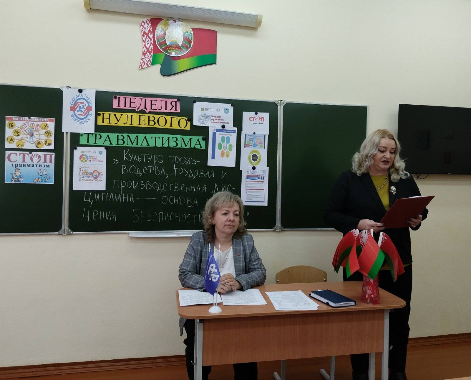 В рамках Недели нулевого травматизма 13 ноября в ГУО "Большешиловичская базовая школа Слонимского района" прошло собрание трудового коллектива с основной повесткой "Культура производства, трудовая и производственная дисциплина - основа обеспечения безопасности труда". Целью собрания являлось повышение уровня осведомлённости и ответственности сотрудников школы в вопросах охраны труда, формирование культуры "нулевого травматизма". Собрание было организовано как комплексное мероприятие, сочетающее официальное информирование с интерактивными элементами для обеспечения максимального вовлечения и усвоения материала. С помощью "кейс-метода" проводился анализ ошибок, а метод "Обратная связь и проверка знаний позволил выявить "слабые места" и поработать над их устранением. Красной нитью сквозь всё собрание протянулась мысль, что "безопасность начинается с каждого из нас. Только вместе, соблюдая дисциплину и порядок мы сможем достичь нулевого травматизма!"