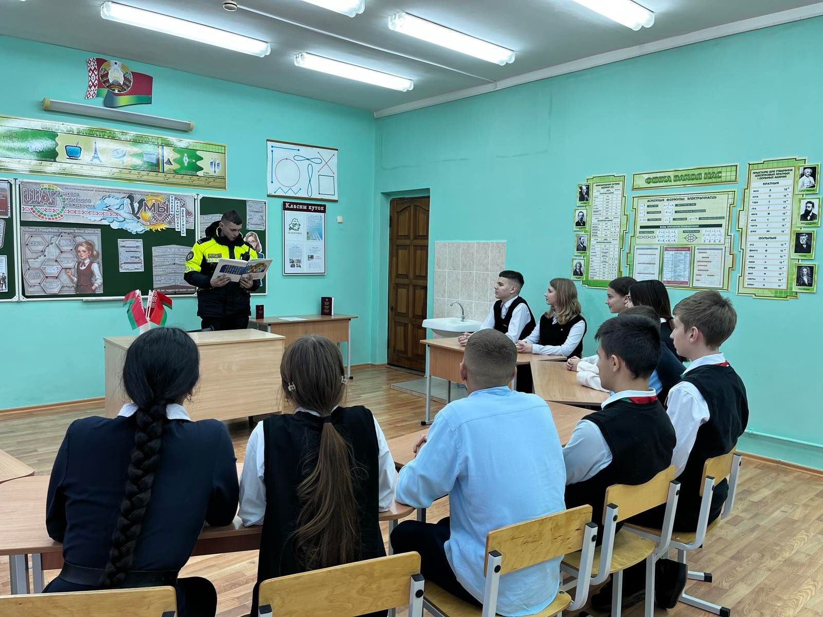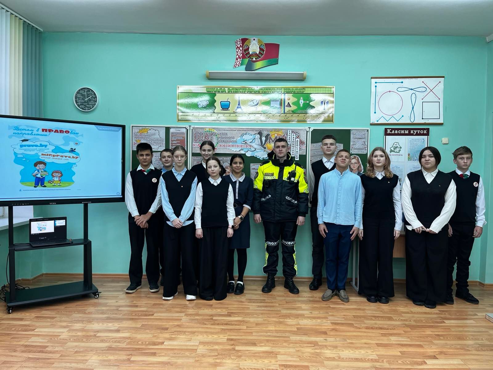 Герасимчик Диана Петровна познакомила с гостем мероприятия - Комышкайло Максимом Викторовичем инспектором ГАИ Слонимского РОВД , который рассказал о своей гражданской позиции и ответил на вопросы учащихся.
