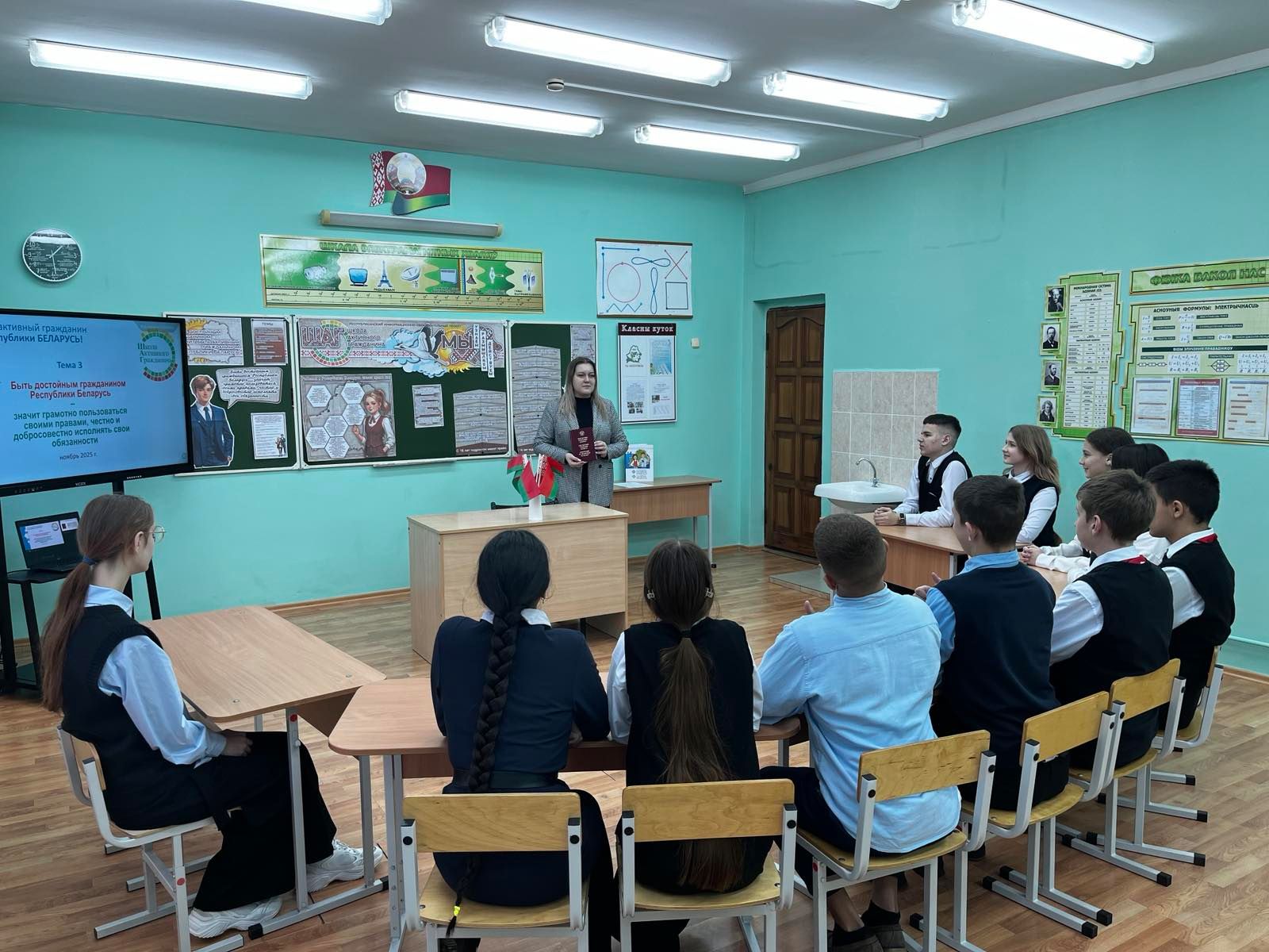 27.11.2025 в рамках информационно-образовательного проекта Школа Активного Гражданина в 8 и 9 классе прошло мероприятие на тему «Быть достойным гражданином Республики Беларусь – значит грамотно пользоваться своими правами, честно и добросовестно исполнять свои обязанности».