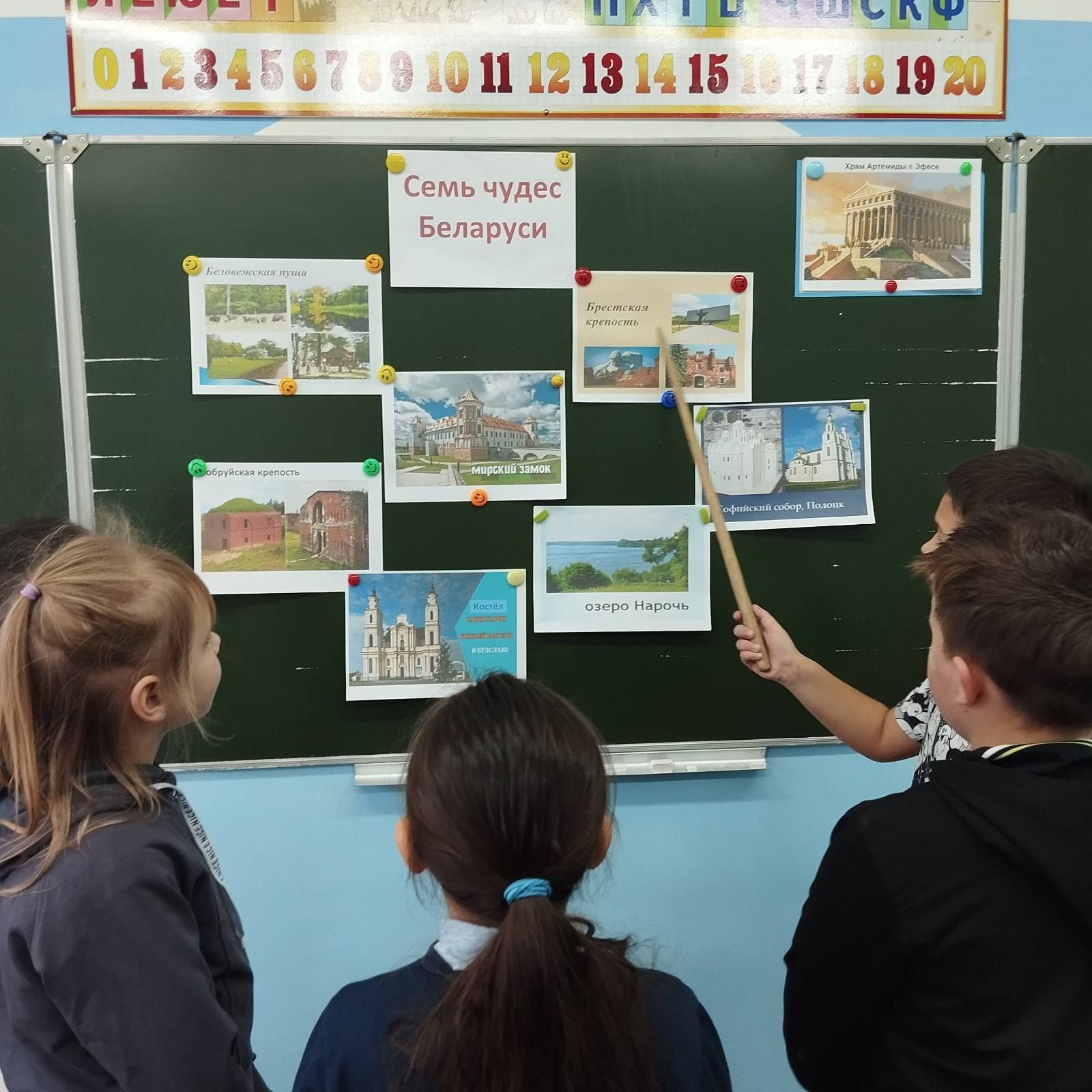 В рамках шестого школьного дня, 6 декабря с учащимися начальных классов было проведено заочное путешествие «Семь чудес Беларуси». В ходе мероприятия ребята познакомились с памятниками природы и архитектуры, составившими топ-7 признанных чудес Беларуси. Под средством презентации учащиеся побывали и в Беловежской пуще, и в Полоцке в соборе Святой Софии, и в Мирском замке, и в Брестской крепости, и в Несвижском замке, и в Борисоглебской церкви, и в одном из красивейших мест нашей Родины – на берегу озера Нарочь.В ходе мероприятия разгадывали ребусы и викторину, познакомились с историческим наследием нашей Родины, обменялись впечатлениями от увиденного.