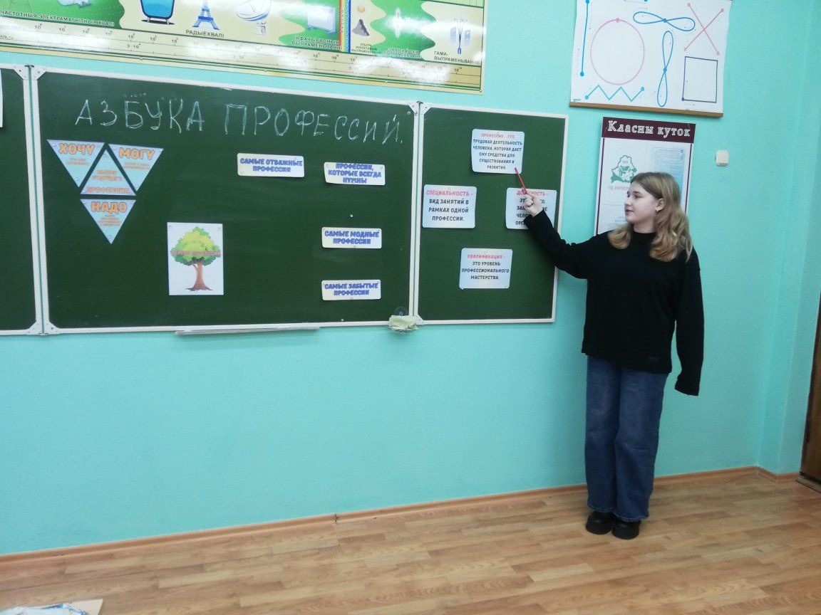Выбор профессии - это очень важное событие в жизни каждого человека. Но какую бы вы профессию ни выбрали, вам всегда пригодятся знания, полученные в школе. 20 декабря учащиеся 5-9 классов участвовали в практикуме "Азбука профессий" в рамках шестого школьного дня. Ребята узнали о профессиональных характеристиках, о формуле профессии, создали визитку профессии своих родителей. Затем они распределили профессии на самые нужные, самые модные, самые отважные и самые забытые. Повеселились, отвечая на вопросы "Правильно-неправильно. Он-она". Продолжили игрой хит-парад - профессии в песнях. Подводя итоги, ребята создали "Дерево профессий".