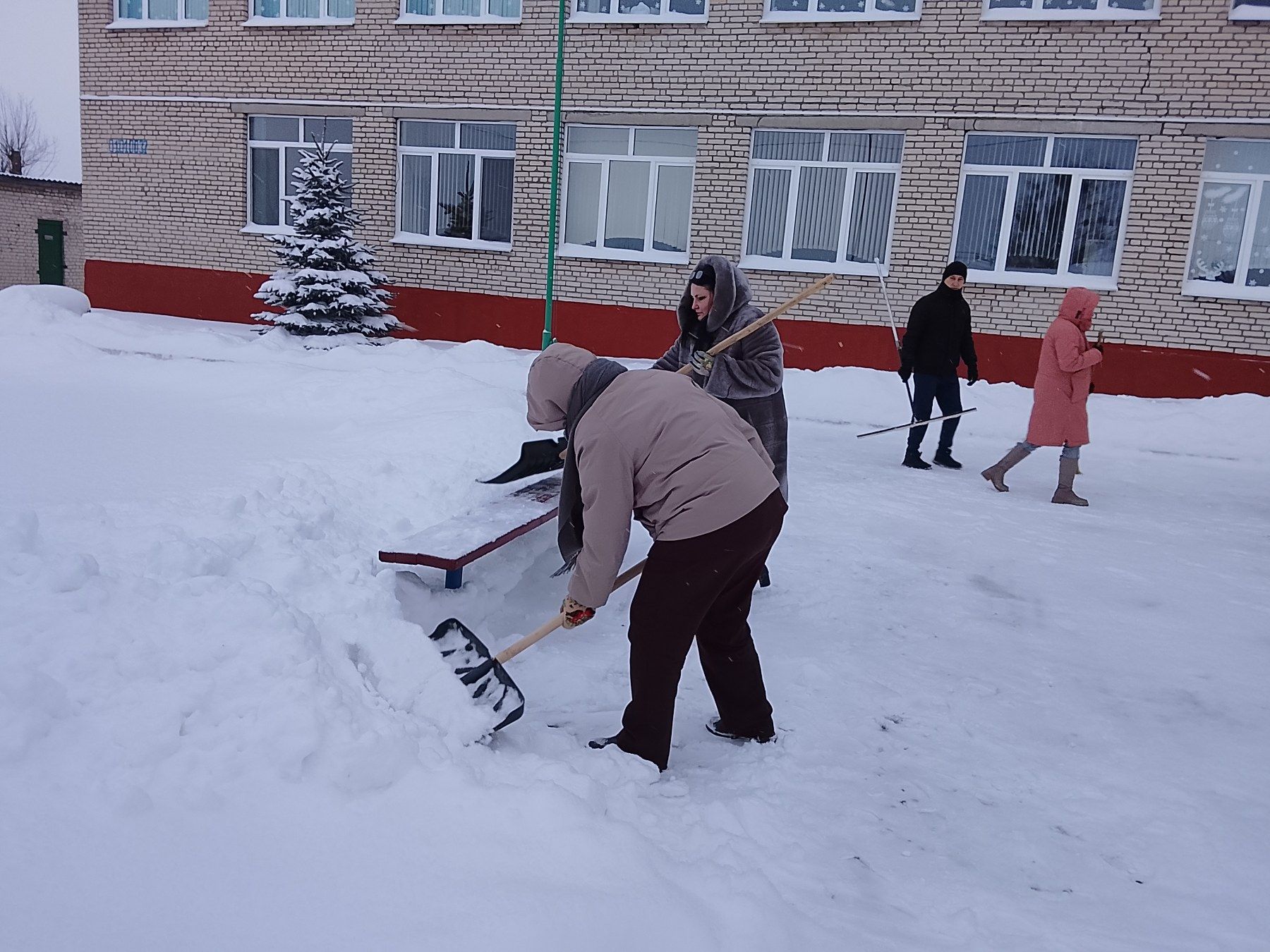 10 января учащиеся и работники ГУО „Большешиловская базовая школа Слонимского района“ приняли активное участие в уборке снега на территории учреждения образования