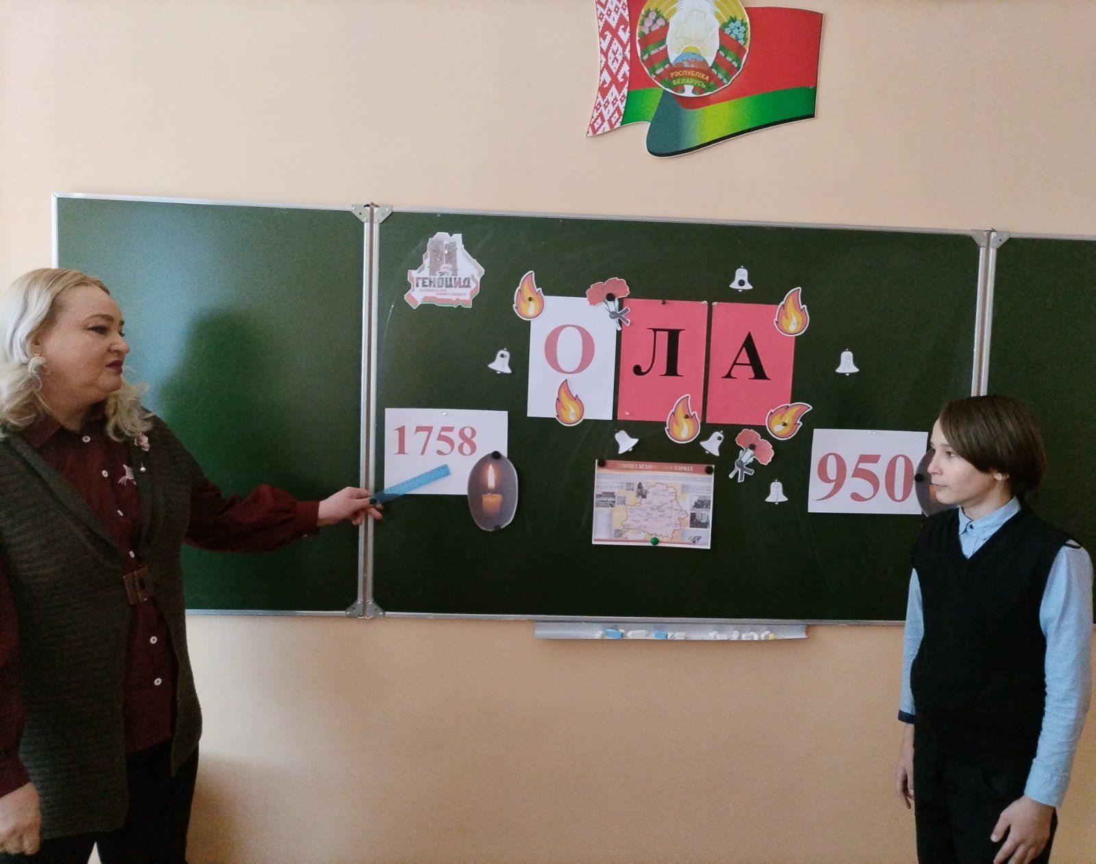 14 января для учащихся 7 класса был проведён урок-реквием с элементами виртуальной экскурсии "Ола - обожжённая память поколений". Мероприятие было поделено на блоки "Тишина", "Голоса", "Камень" и "Обет", на каждом из которых выполнялись задания: "Цифры и смыслы", "Голоса свидетелей", " Архитектура скорби", "Письмо сверстнику из 44-го". Мероприятие вызвало глубокий эмоциональный отклик. Пока мы помним имена погибших и приходим к их мемориалам- они живы в нашей культуре и национальном сознании. Мероприятие завершилось под звуки метронома, символизирующего стук сердец тех, кто навсегда остался в Оле.