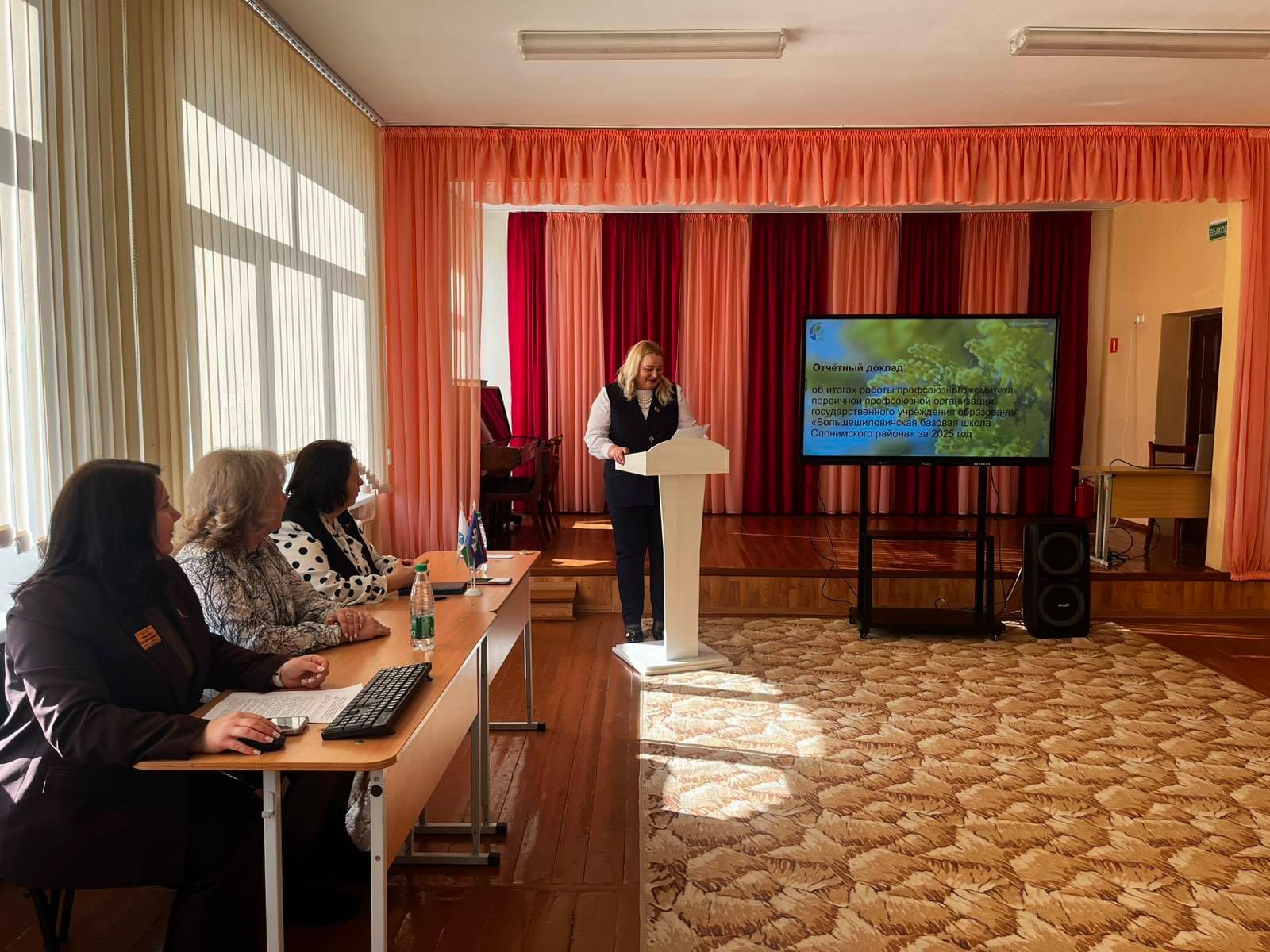 16 февраля в ППО ГУО "Большешиловичская базовая школа Слонимского района" прошло отчётное профсоюзное собрание. Оно прошло конструктивно, при высокой явке и активном участии членов ППО. Итоги за 2025 год признаны положительными: профсоюз обеспечил значимую социальную поддержку, провёл просветительские мероприятия и наладил взаимоотношения с администрацией школы. Финансовые отчёты утверждены, задачи на 2026 год поставлены. В работе отчётного профсоюзного собрания принимала участие председатель Слонимской районной организации Белорусского профессионального союза работников образования и науки Фидрик Наталья Николаевна.