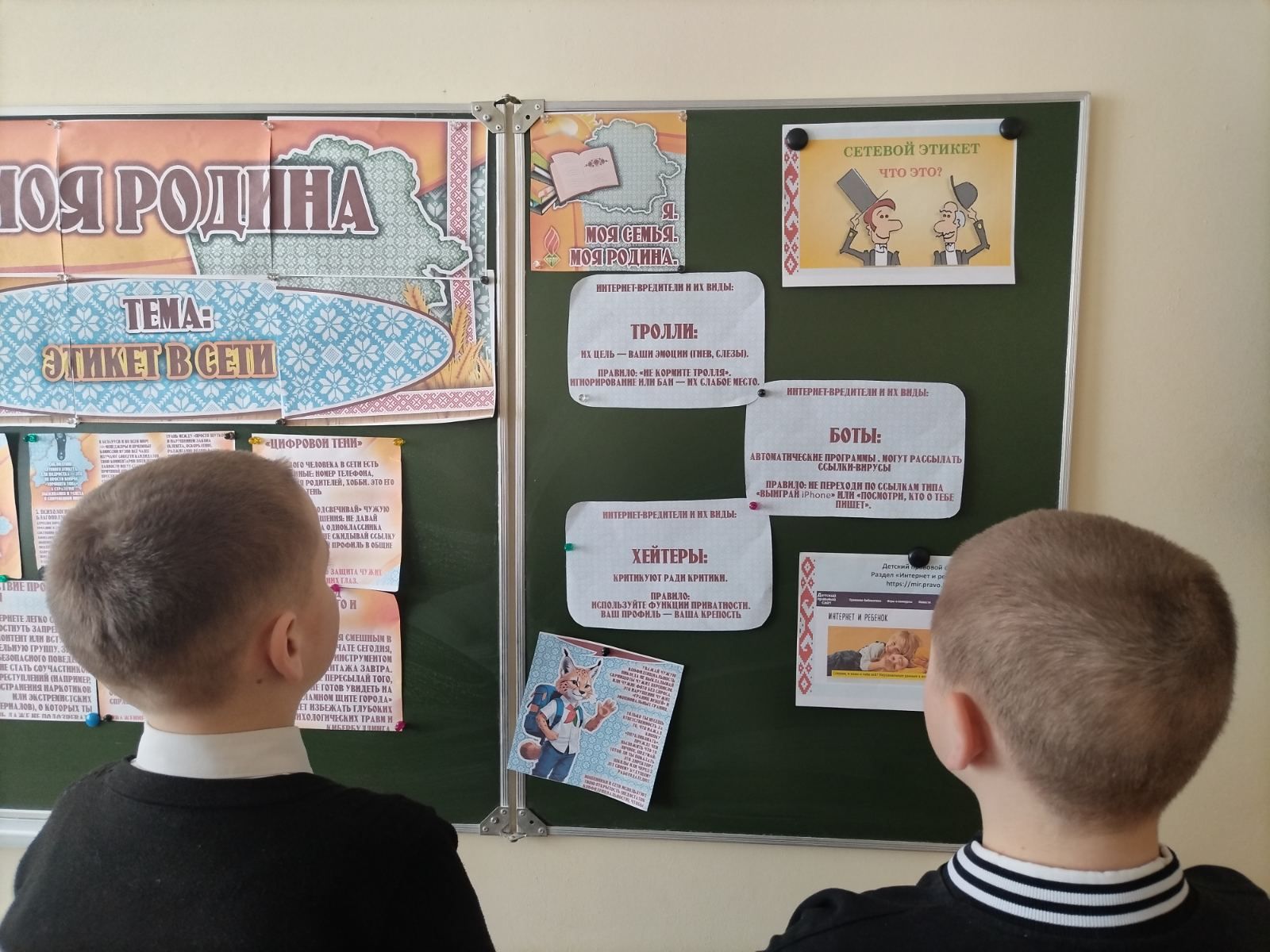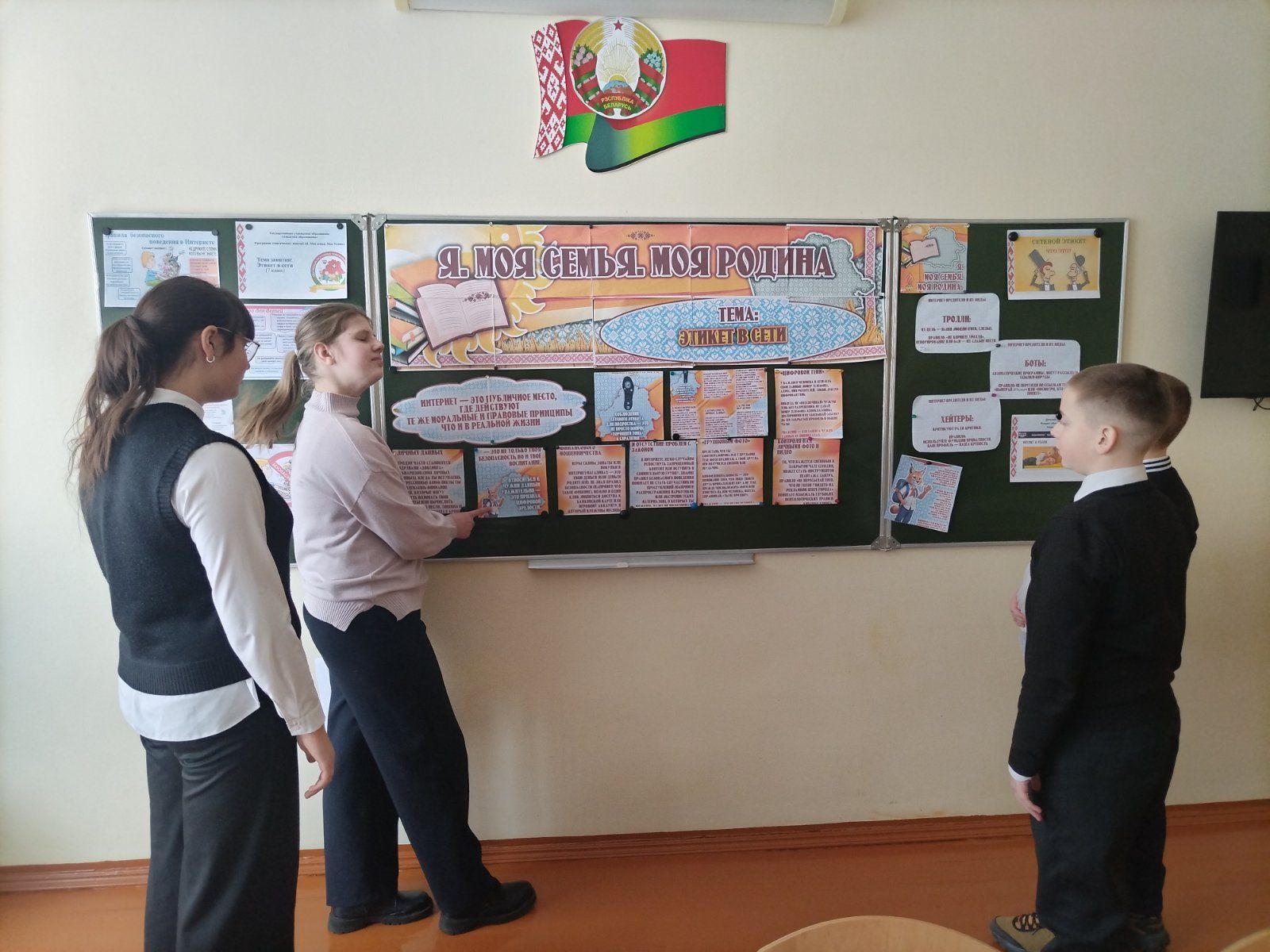 19 февраля для учащихся 7 класса был проведён информационный час из цикла "Я. Моя семья. Моя Родина" под названием "Этикет в сети". Мероприятие проводилось в форме интерактивного урока-тренинга с элементами ролевых игр и мини-квеста. Целью информационного часа было познакомить семиклассников с правилами вежливого и безопасного поведения в интернете; развивать умение отличать корректное общение от троллинга, буллинга и манипуляций в сети. С помощью мозгового штурма, кейс-игр, ролевых мини-сценок учащиеся смогли разработать памятку с правилами сетевого этикета, которую каждый из них получил в конце занятия, чтобы ей следовать в дальнейшем.
