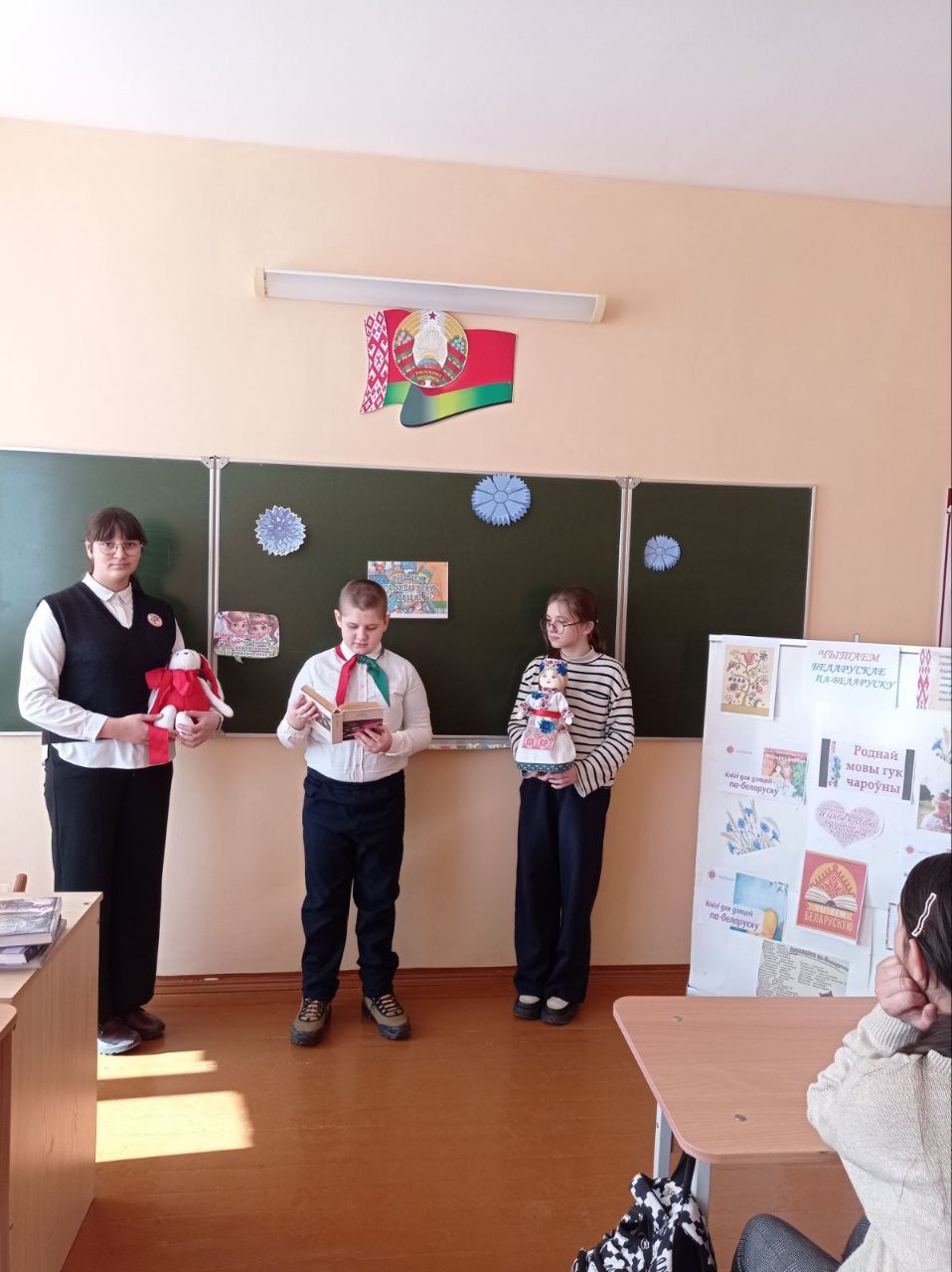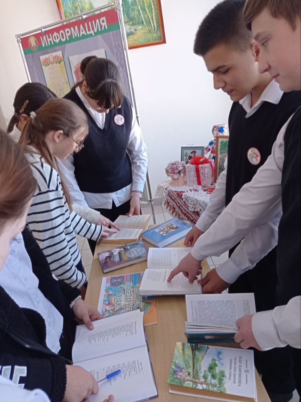У рамках праекта "Кожная пятніца - роднае, сваё" вучні школы прынялі ўдзел у літаратурным экскурсе "ЧЫТАЙ БЕЛАРУСКАЕ ПА-БЕЛАРУСКУ", дзе пазнаёмілася з кніжнай выставай, беларускімі пісьменнікамі-юбілярамі, навінкамі літаратуры. Школьнікі змаглі праявіць свае творчыя і інтэлектуальныя здольнасці ў слоўнікавым лабірынце, у гульні "Перакладчык". Вымаўляючы хуткамоўкі, адчулі мілагучнасць і непаўторнасць роднай мовы, разгадваючы загадкі, праявілі сваю кемлівасць і знаходлівасць, а падчас хвілінкі-весялінкі, пераканаліся, што беларусы - народ творчы, цікавы і жартаўлівы, а мова - родная, свая.