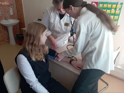 В рамках изучения вопроса профилактики сердечно-сосудистых заболеваний, учащиеся 9 класса посетили Шиловичский фельдшерско-акушерский пункт. Заведующая ФАПом познакомила учеников с заболеваниями сердечно-сосудистой системы и провела беседу по их профилактике. А также ребята с увлечением познакомились со способами измерения кровяного давления, пульса, сатурации. Работник здравоохранения подробно рассказала о заборе крови для проведения общего и биохимического анализов, анализа уровня глюкозы и как эти показатели отражаются на здоровье человека. Подобные мероприятия способствуют привлечению внимания учащихся к заботе о своем здоровье.