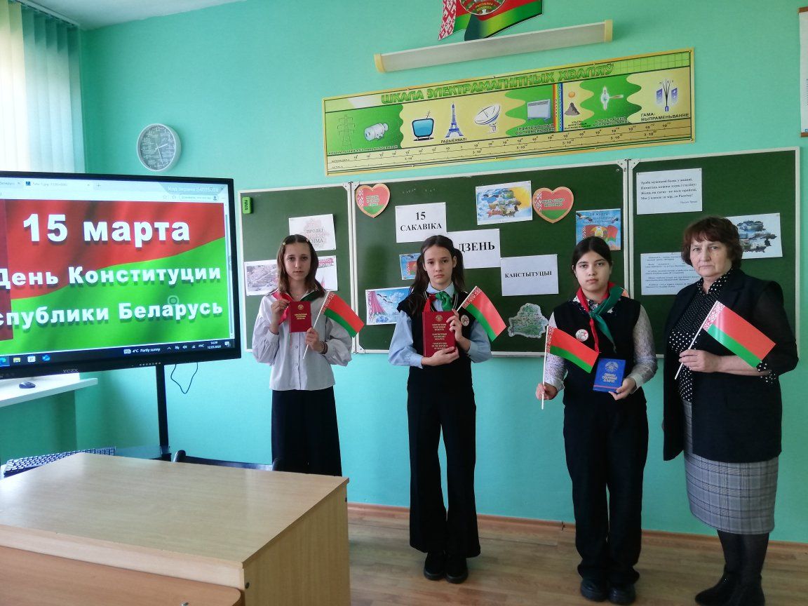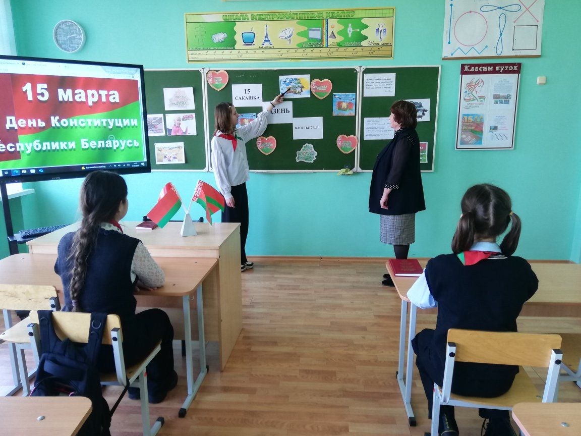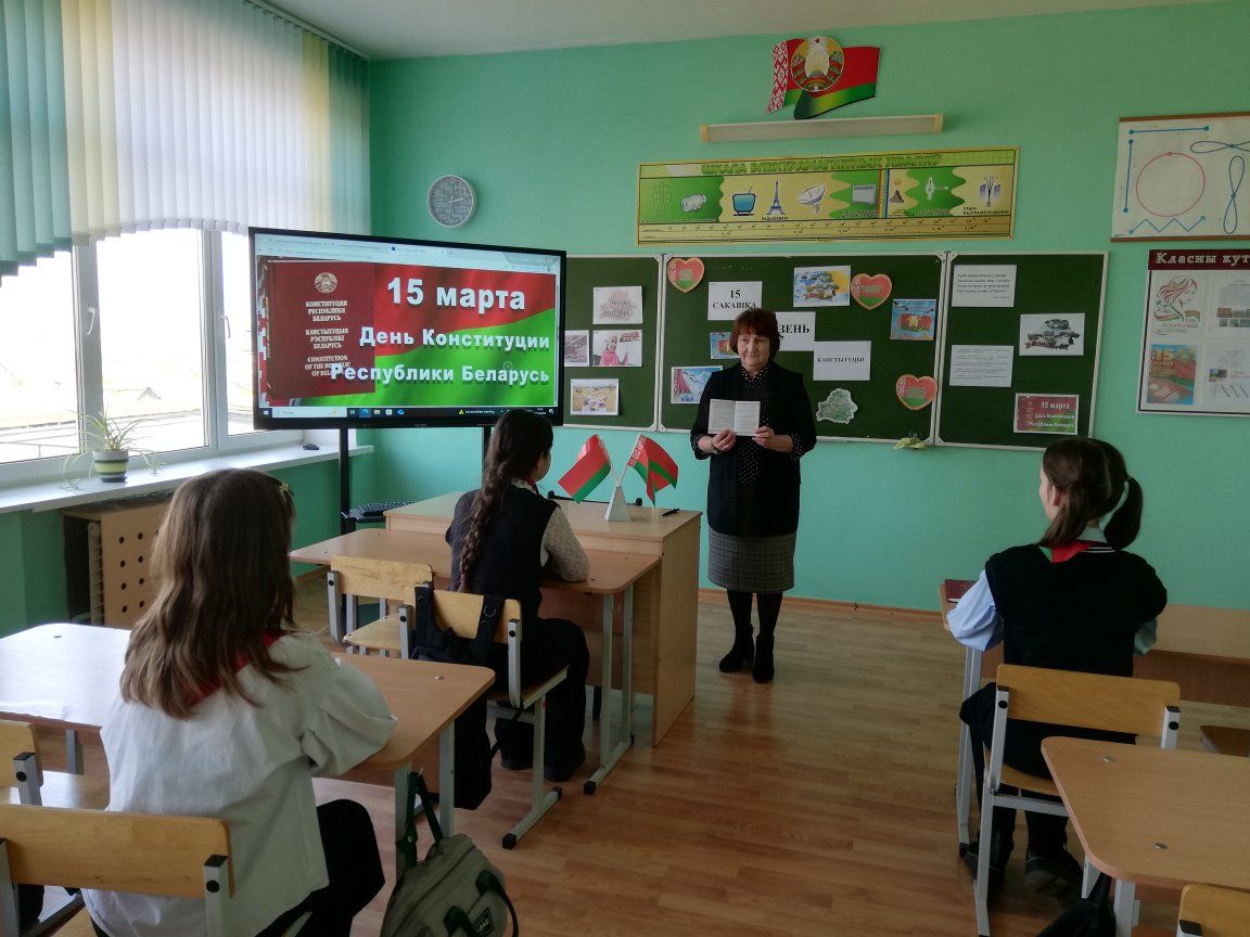 13 марта для учащихся 6 класса прошел Единый урок, посвященный Дню Конституции Республики Беларусь. Подростки глубже познакомились с историей Конституции Республики Беларусь, с наиболее интересными фактами об Основном Законе государства, а также обсудили вопросы важности существования Конституции и паспорта в любом государстве. В конце беседы пришли к выводу: нужно знать свои права, необходимо уважать права других людей, выполнять обязанности.