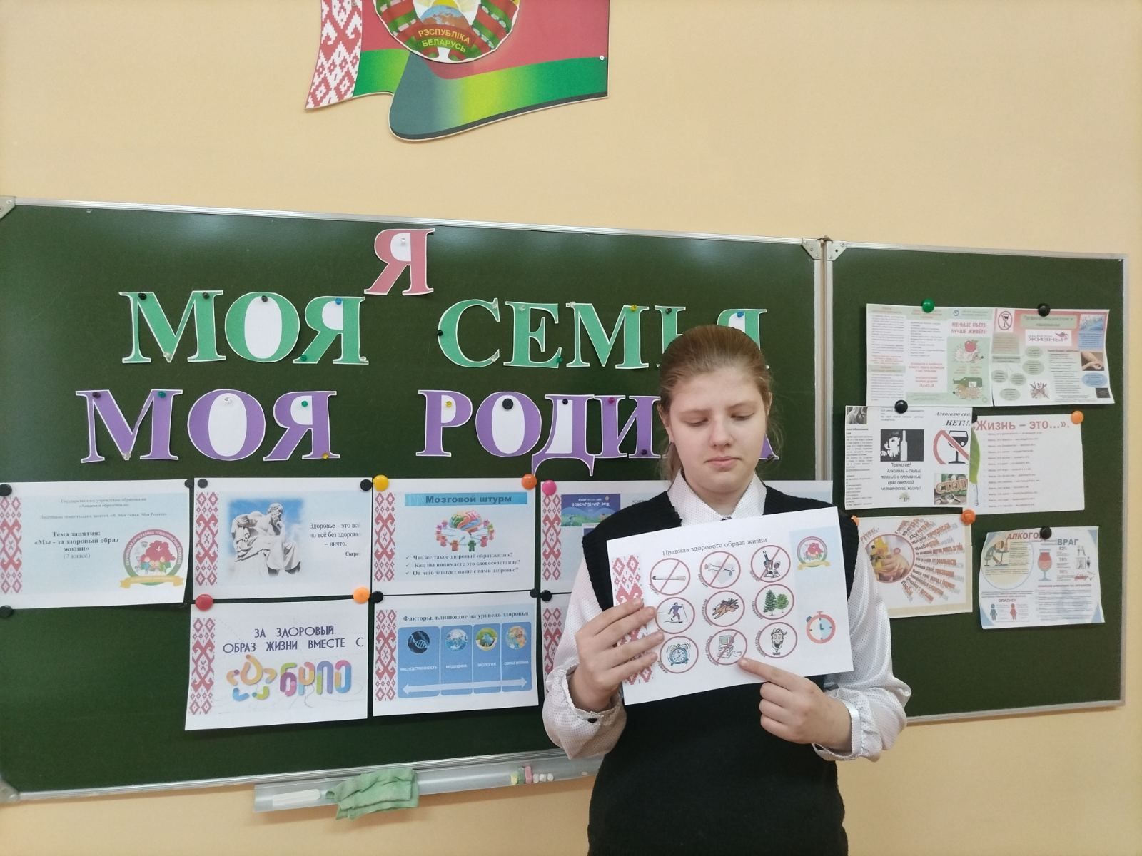 16 марта для учащихся 7 класса прошёл классный час из цикла "Я. Моя семья. Моя Родина" под названием "Мы - за здоровый образ жизни". Основная идея мероприятия - показать взаимосвязь между здоровьем одного человека, благополучием его семьи и процветанием страны. ЗОЖ на мероприятии рассматривался как проявление гражданской ответственности и любви к своей Родине. Мероприятие началось с упражнения "Дерево моих привычек", продолжилось викториной "Беларусь- страна спорта и здоровья", разбором кейсов "Ситуации выбора". Семиклассники осознали, что ЗОЖ - это не только отсутствие болезней, но и активная жизненная позиция. Установилась к концу мероприятия чёткая связь:"Я здоров. Моя семья счастлива. Моя страна процветает ".