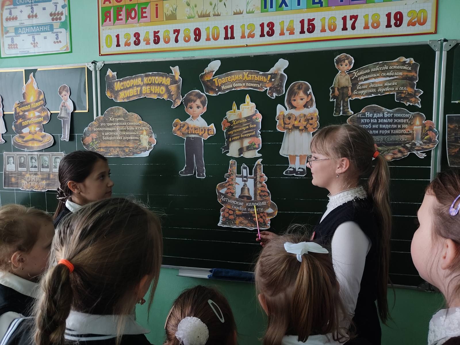 19 марта в 1 и 4 классах прошел Единый урок, посвященный одной из самых трагических страниц истории Великой Отечественной войны — памяти сожженной деревни Хатынь.