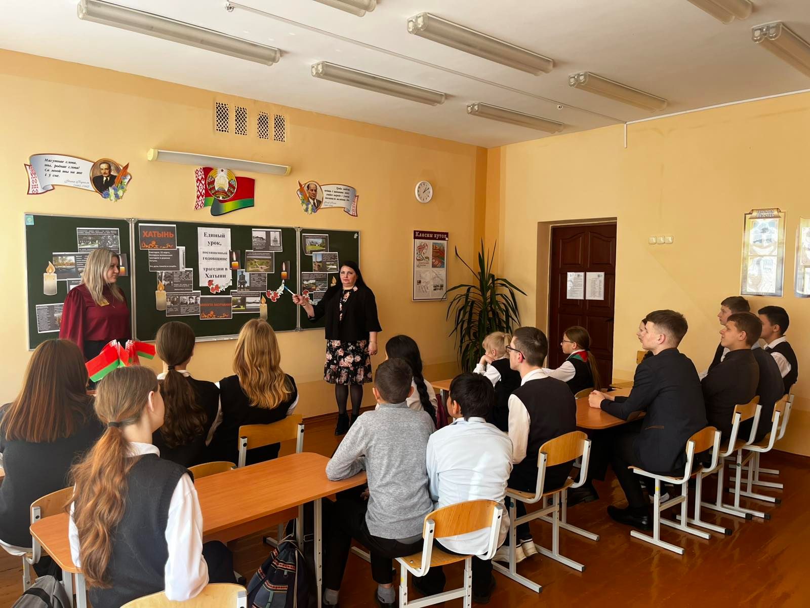 Трагедия Хатыни - одна из самых памятных и страшных страниц для нашей страны. Звон колоколов этой сожжённой деревни до сих пор откликается болью в наших сердцах. 19 марта учащиеся нашей школы приняли участие в Едином уроке, посвящённом трагедии Хатыни. Школьники приняли участие в беседе "Без срока давности", совершили виртуальную экскурсию по Хатыни. Задание "Числа в истории Хатыни" помогло учащимся запомнить горькую статистику трагедии. Школьники почтили память погибших жителей Хатыни молчанием, своими руками изготовили цветы для возложения к мемориалу. Трагедия Хатыни - память об ужасах войны. Мы за мир!
