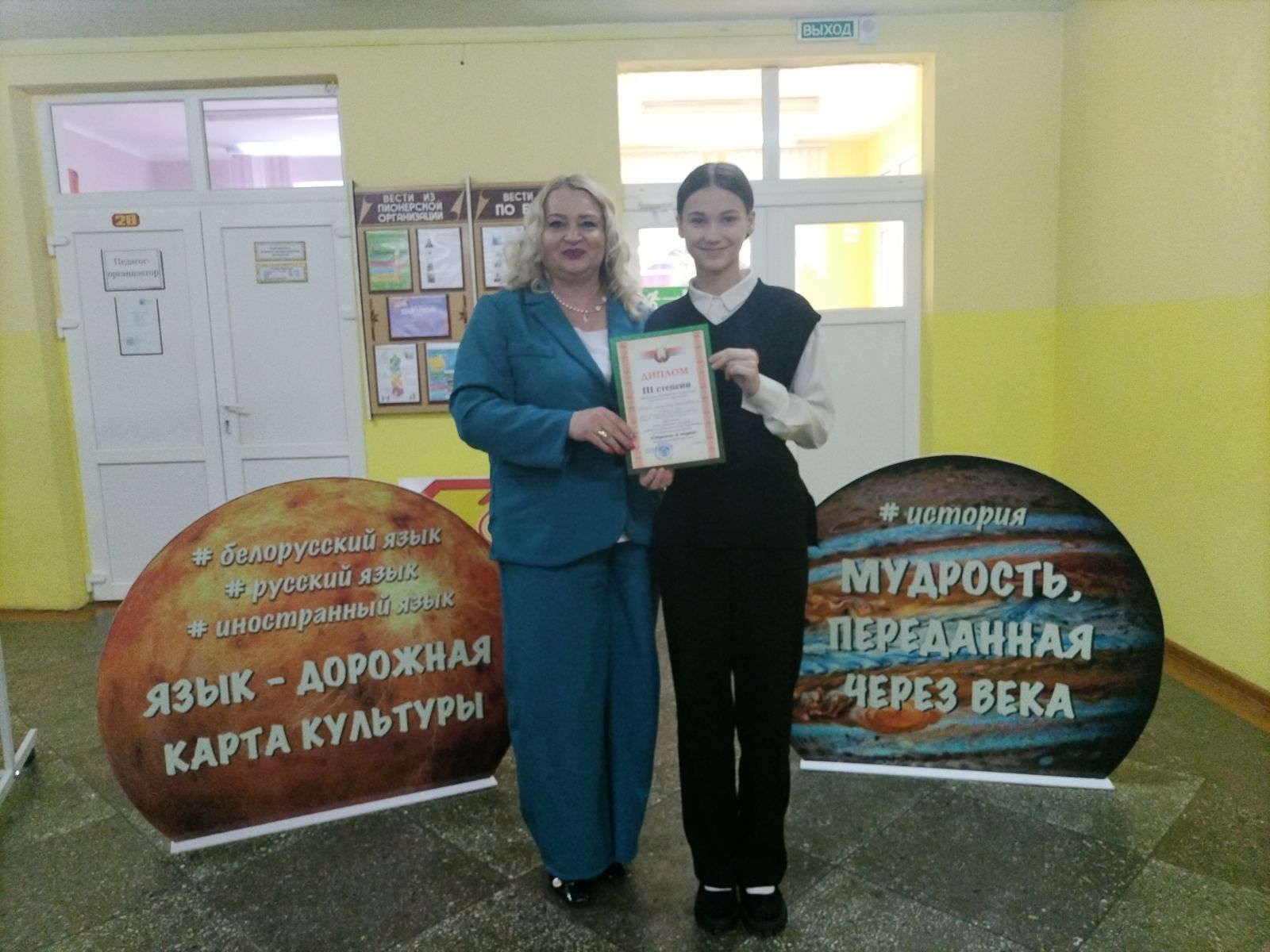 I степени, а в секции "Иностранный язык" Михно Елизавета, учащаяся 9 класса, и учитель немецкого языка Кречик В. М. завоевали диплом III степени.