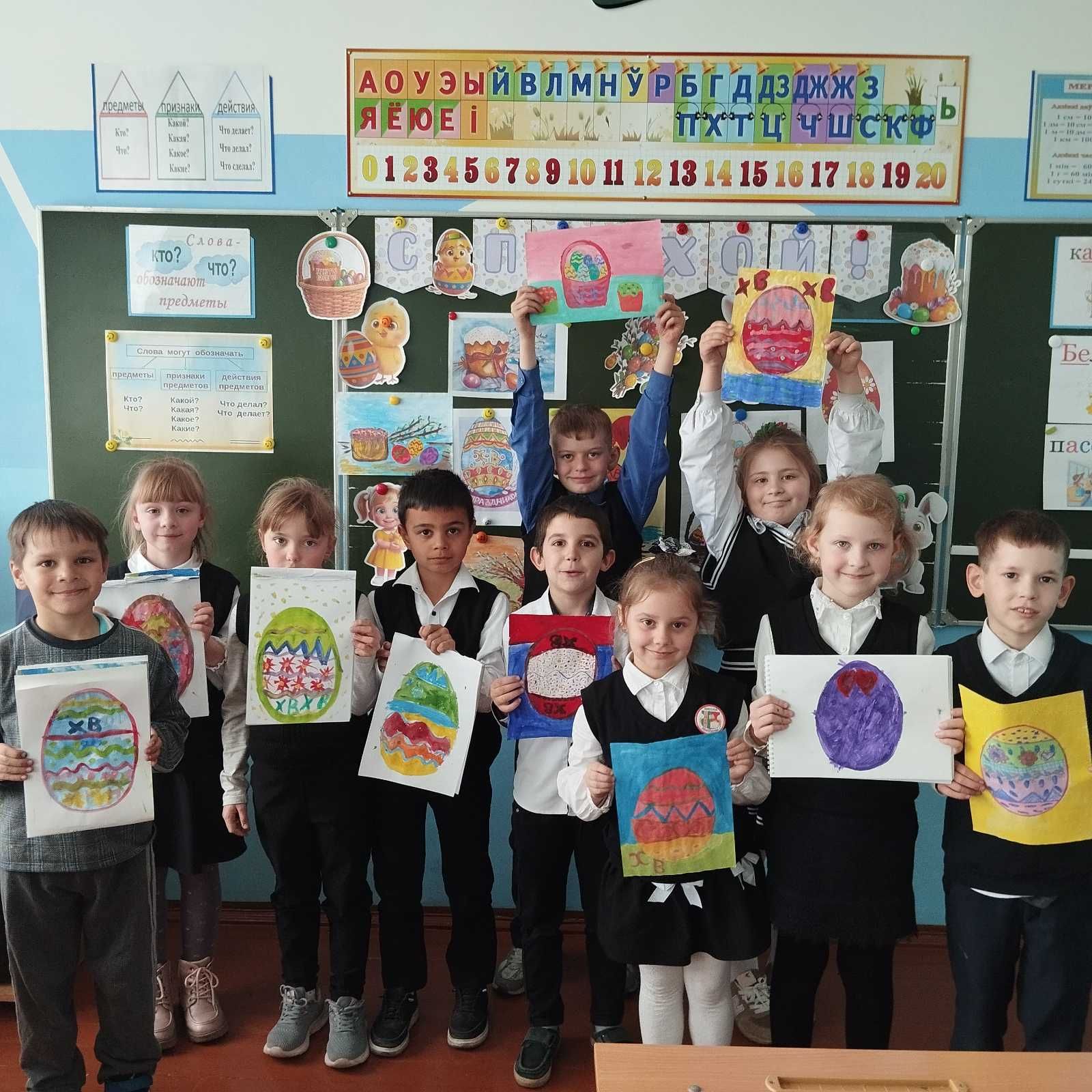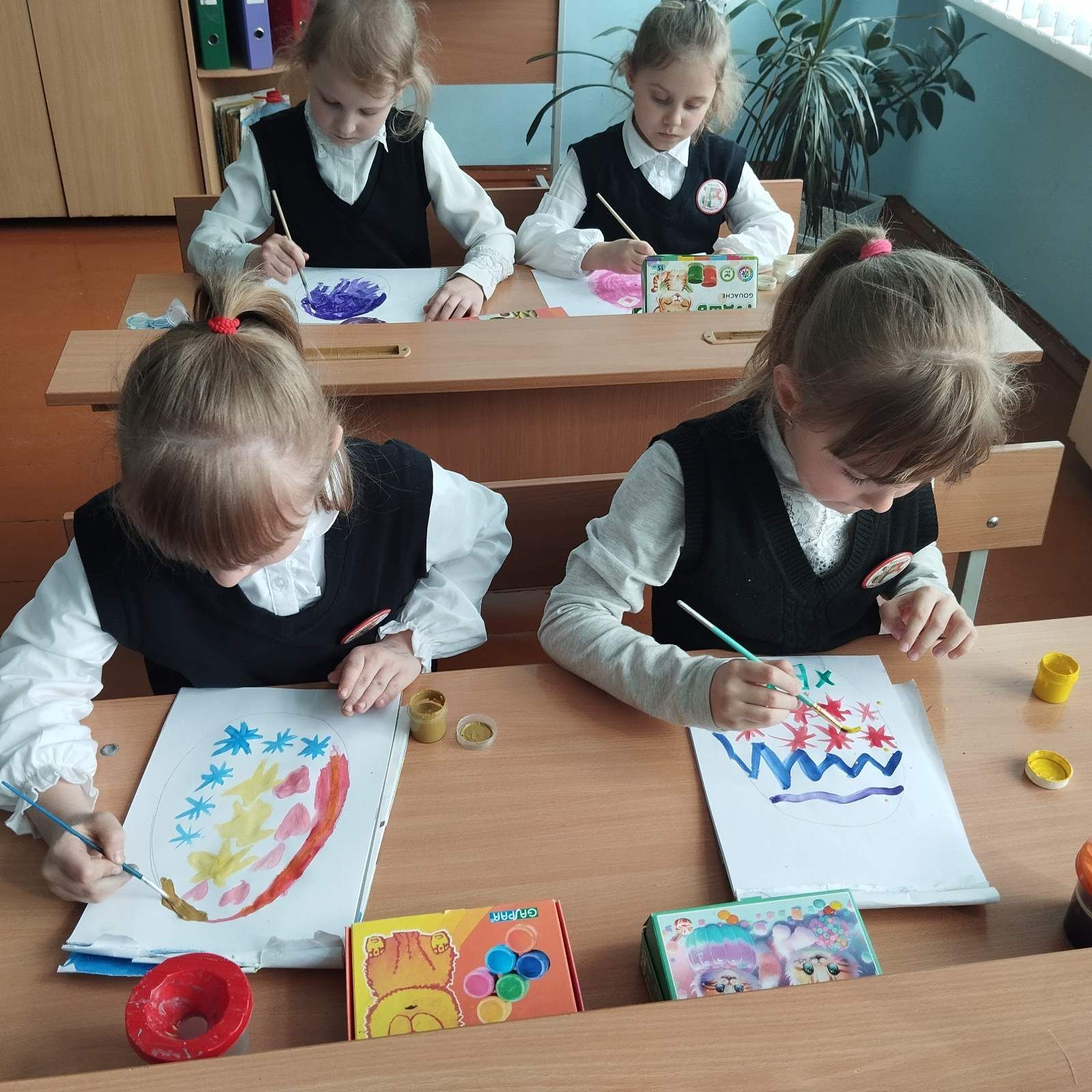 Прежде чем взять в руки кисти, ребята из начальной школы узнали: почему яйцо — главный пасхальный символ; что означают традиционные цвета: красный — жизнь, жёлтый — солнце, зелёный — весеннее пробуждение; какие узоры считались оберегами.