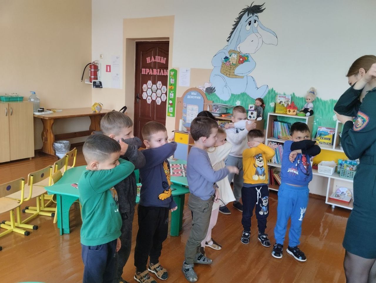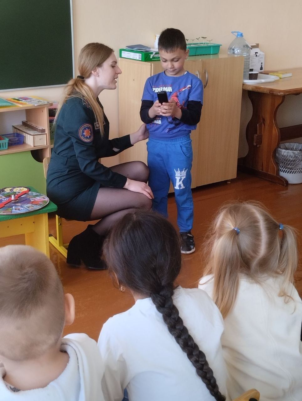 Сегодня воспитанников нашего детского сада посетили сотрудники МЧС, которые рассказали про безопасность дома и на улице. Вместе с детками поиграли, вспомнили и повторили номера телефонов экстренных служб. Сотрудники показали воспитанникам мастер класс, как вести себя при пожаре.
